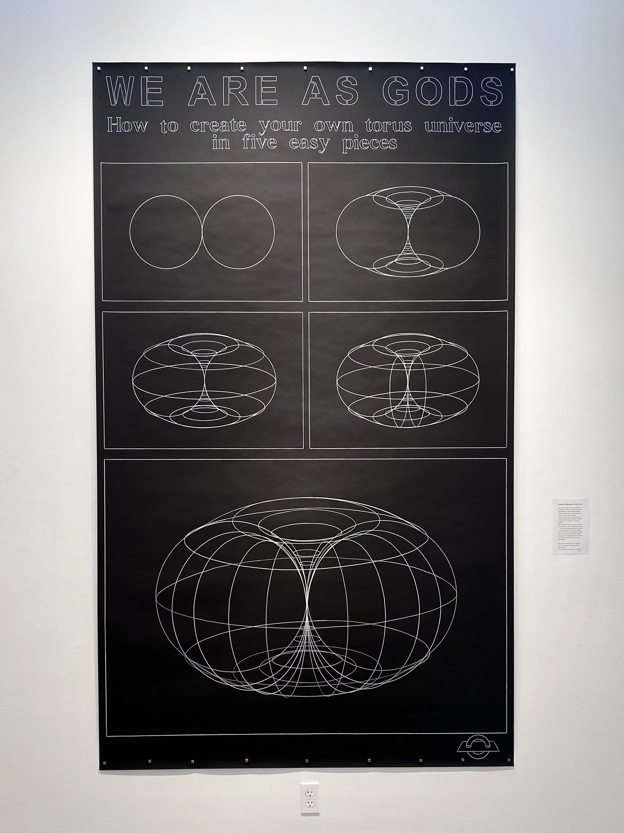 We Are As Gods, white pencil on black paper, 92" x 60", 2025, $6,000